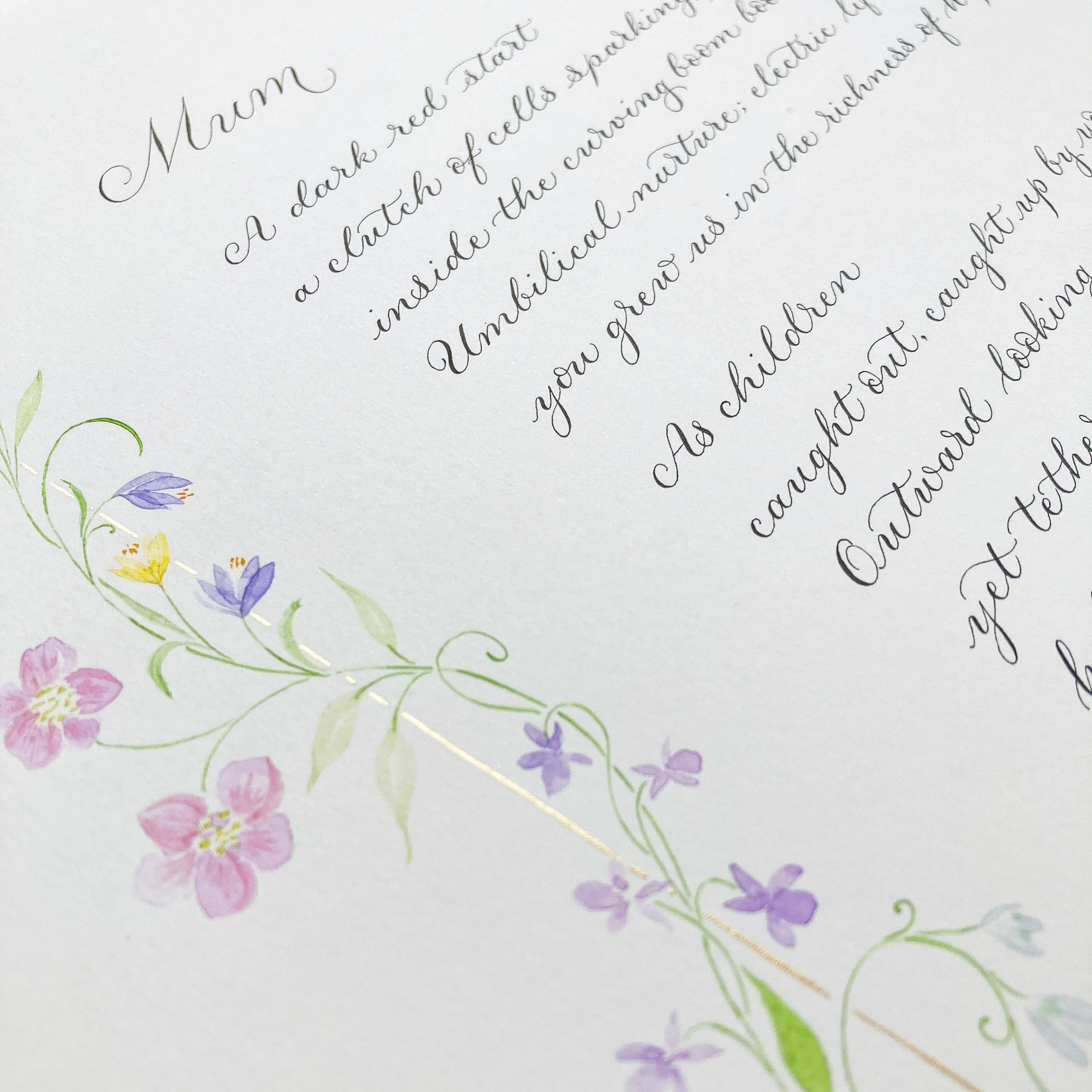 Hand-lettered gifts, beautiful calligraphy for poems and family trees, and bespoke wedding calligraphy - all made with care and love in the UK